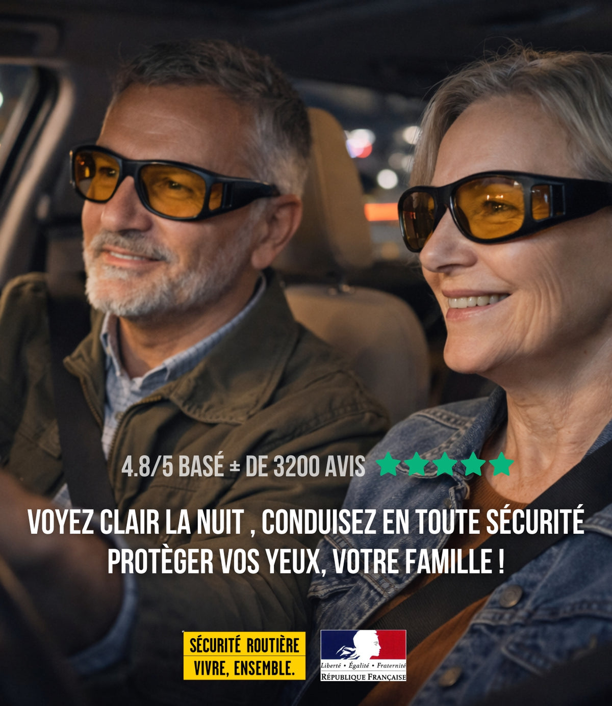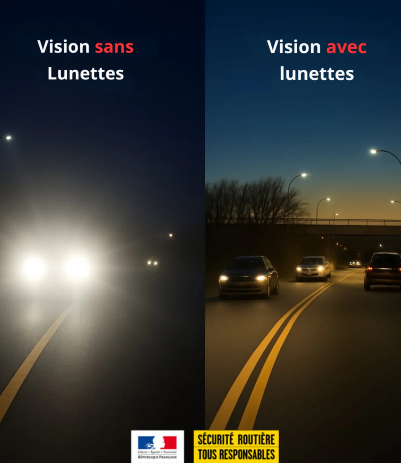 Nous savons notamment que l’acuité visuelle chute d’environ 50% la nuit, il va donc de soi que le port de lunettes adaptées est alors plus que vivement conseillé.