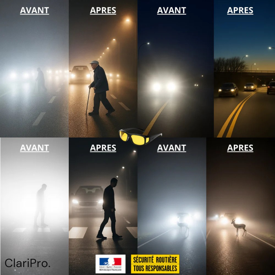 Les lunettes ClariPro sont appréciées par de nombreuses personnes ayant une cataracte pour leur capacité à réduire l’éblouissement, les halos lumineux et l’inconfort causé par les phares, surtout la nuit.